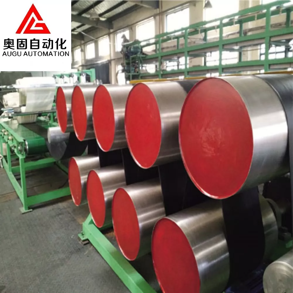 5. Dartma və saxlama cihazı: Bu hissə rezin təbəqə ilə örtülmüş polad telin çəkilməsi və saxlanmasına cavabdehdir. Polad məftil anbarının uzunluğunun istehsal ehtiyaclarına cavab verməsini təmin etmək üçün gərginlik tampon çarxı vasitəsilə polad telin gərginliyini saxlayır.